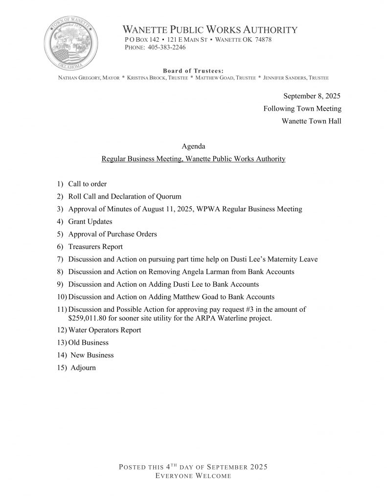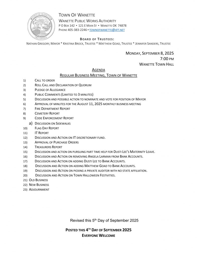Explore the latest meeting agendas available for download and stay informed with news updates that keep the Wanette community connected and engaged.