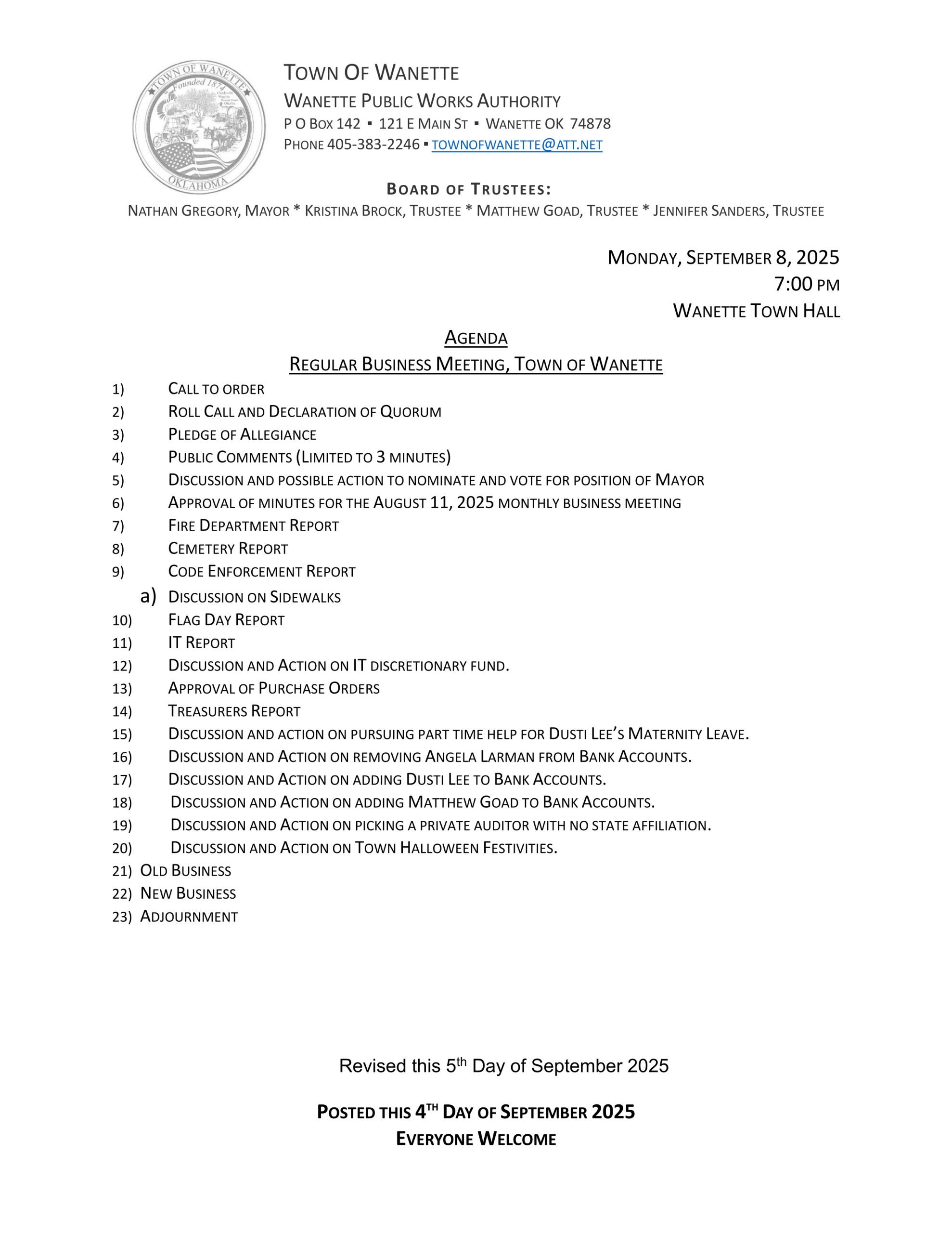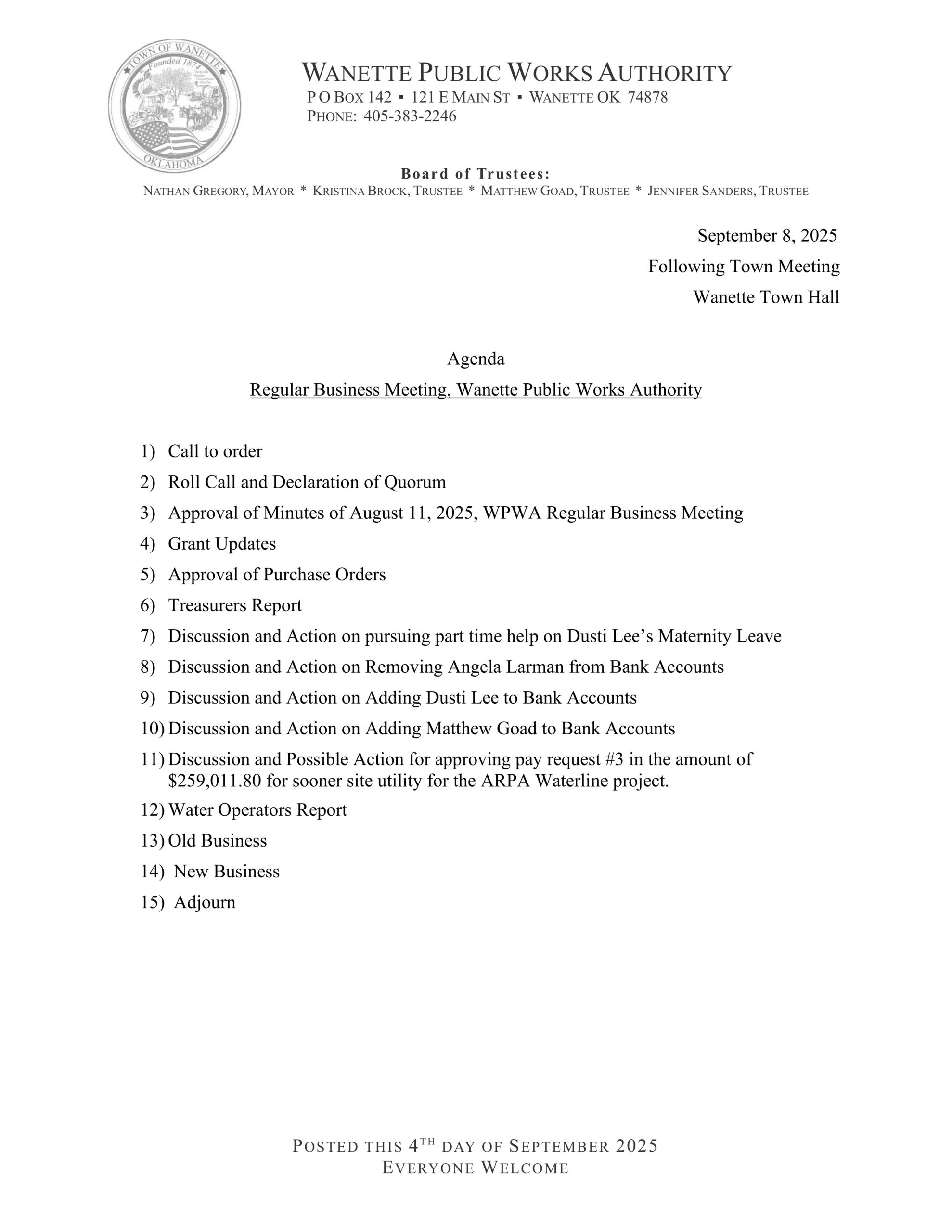 Explore the latest meeting agendas available for download and stay informed with news updates that keep the Wanette community connected and engaged.